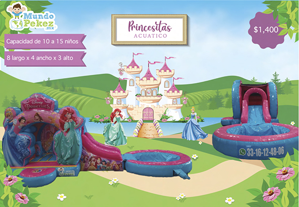 Consiente a las princesas en este maravilloso mini spa inflable. Actividades como manicura, pedicura, peinado, maquillaje y mascarillas.